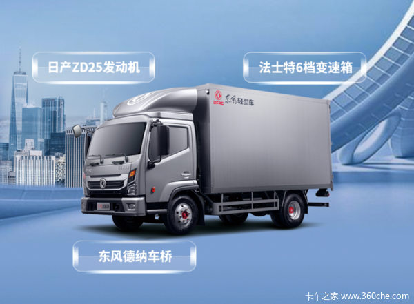 东风凯普特星云配备日产ZD25发动机+东风德纳车桥+法士特高端变速箱的黄金动力组合,ZD25发动机最大功率120kW,最大扭矩450N.m,低速扭矩370N.m。