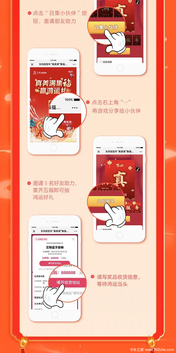 当前位置: 卡车之家 >卡车经销商 > 长春瑞洋汽车销售服务 > 促销新闻 > 集福赢礼〡东风轻型车真美满,集福赢鸿运好礼!