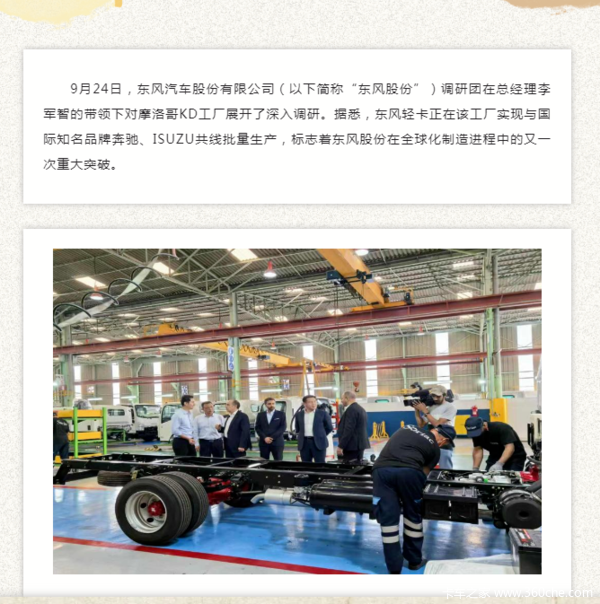 当前位置: 卡车之家 >卡车经销商 > 长春瑞洋汽车销售服务 > 促销新闻 > 东风轻卡在摩洛哥KD工厂与奔驰、ISUZU共线生产