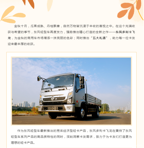 当前位置: 卡车之家 >卡车经销商 > 长春瑞洋汽车销售服务 > 促销新闻 > 东风多利卡飞龙金秋上市福利拉满,助力卡友实现丰收