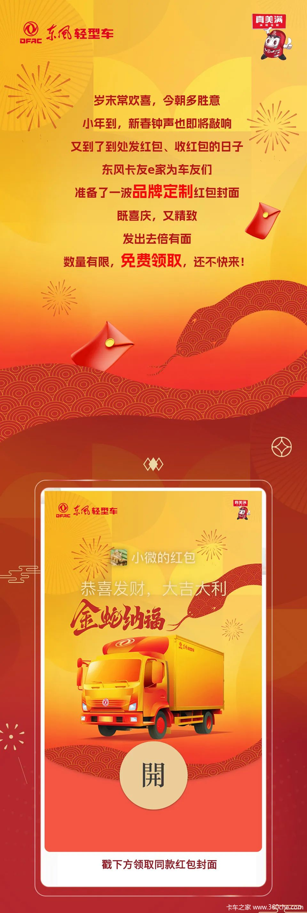 当前位置: 卡车之家 >卡车经销商 > 长春瑞洋汽车销售服务 > 促销新闻 > 小年到,蛇年限定红包封面来报道,过年发倍有面!