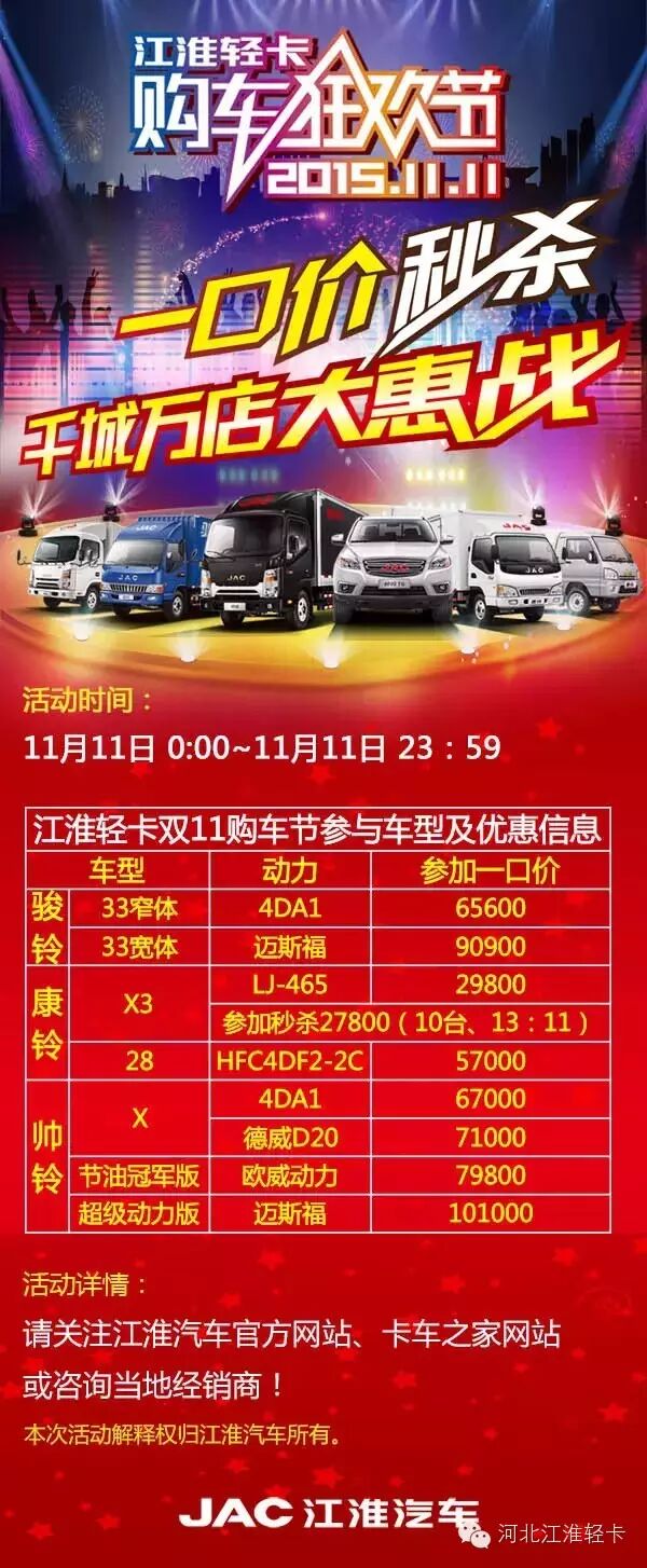 当前位置: 卡车之家 >卡车经销商 > 河北佳豪汽车 > 促销新闻 > 不白等!双十一,江淮轻卡要出大招了!