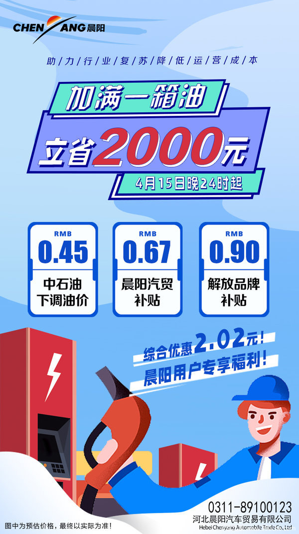 当前位置: 卡车之家 >卡车经销商 > 河北晨阳汽车 > 促销新闻 > 加满一箱油立省2000元,晨阳购车惊喜不断
