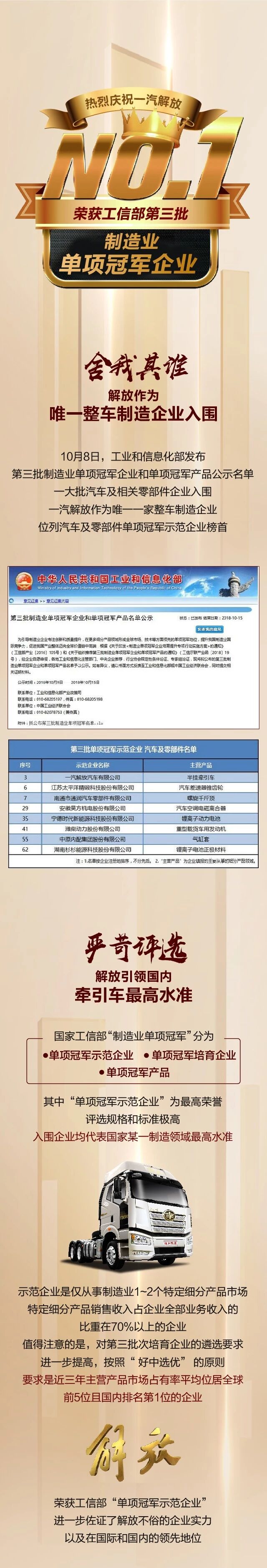 当前位置: 卡车之家 >卡车经销商 > 河北晨阳汽车 > 促销新闻 > 【工信部荣耀认证】解放荣获制造业单项