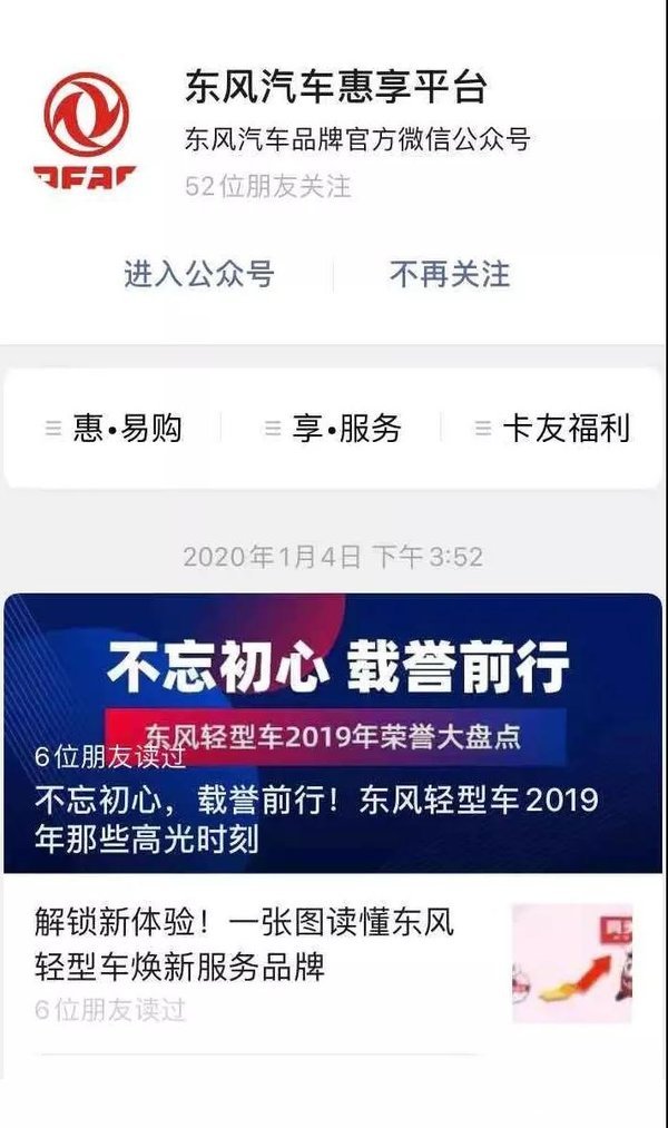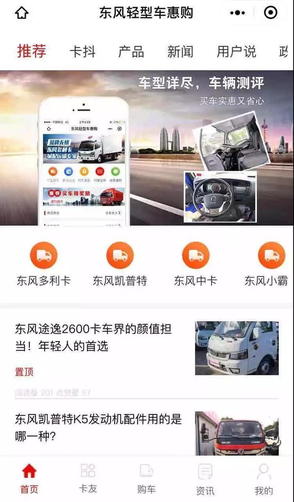 卡友们通过惠享和惠购平台,既能实时了解东风轻型车的产品信息还能随时领到由东风轻型车发放的各种购车福利。