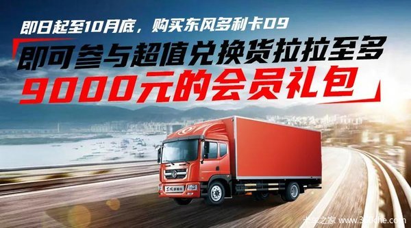 即日起至10月底,购买东风多利卡D9,即可参与超值兑换货拉拉至多9000元的会员礼包,买新车入驻好平台就不愁没货源。长达6个月的会员期内(前4个月累计完成60单再送2个月会员),可享受接单免读秒,单日接单无上限特权。大车自然拉得更多,赚的更多!换车想换就换!