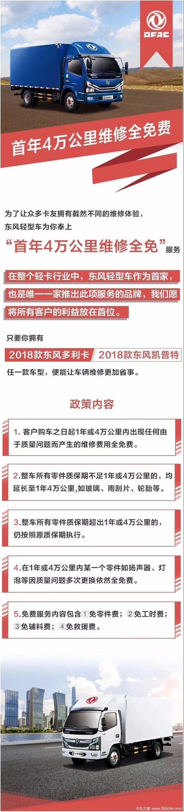 东风轻型车“首年4万公里维修全免费”服务政策!
