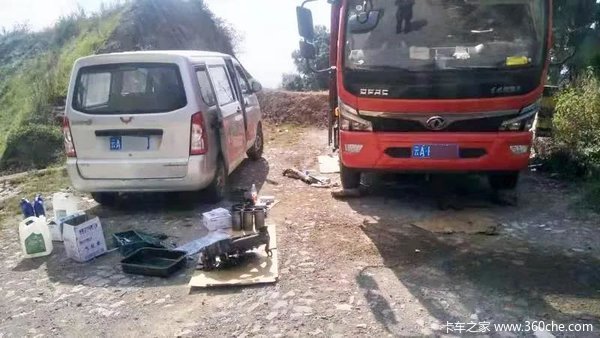 为节省时间,两人分工合作,一人留在现场,进行破损零件的拆卸,另一人开车返回服务站拿取需更换的原材料。晚上8点半左右,材料终于到达,破损的零件也被拆卸下来。顾不上休息,二人就着救援车的前大灯灯光又投入紧张的维修中。