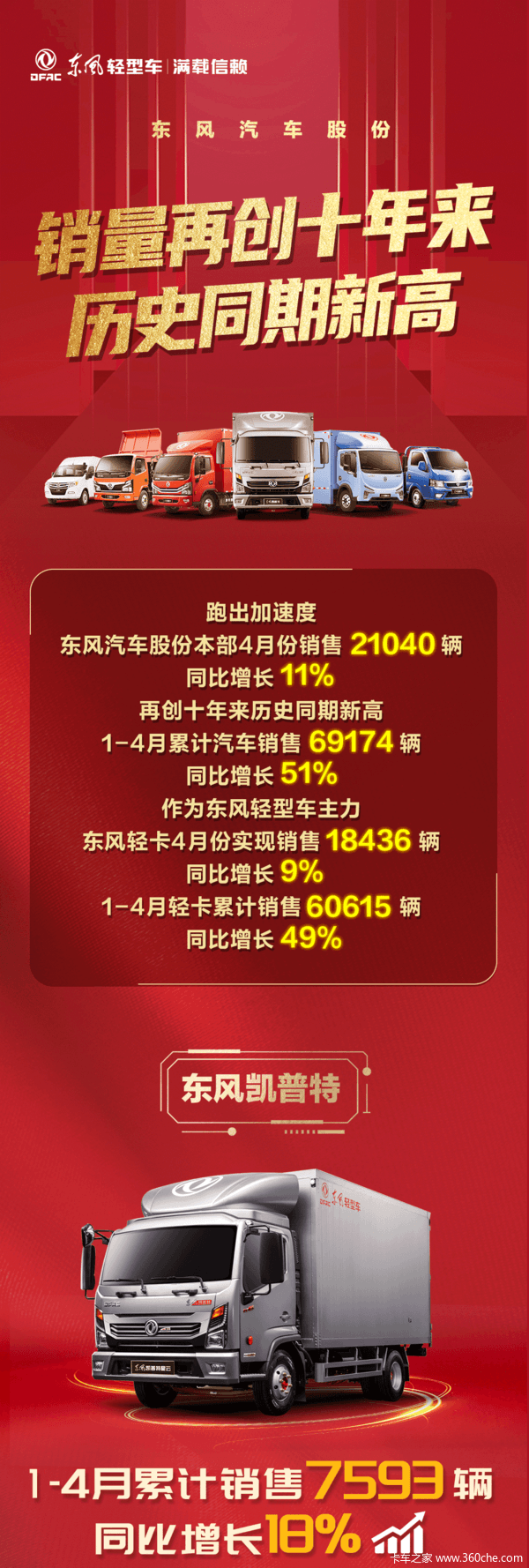当前位置: 卡车之家 >卡车经销商 > 徐州联东汽车 > 促销新闻 > 同比增长51%|东风汽车股份本部1-4月累计汽车销售69174辆