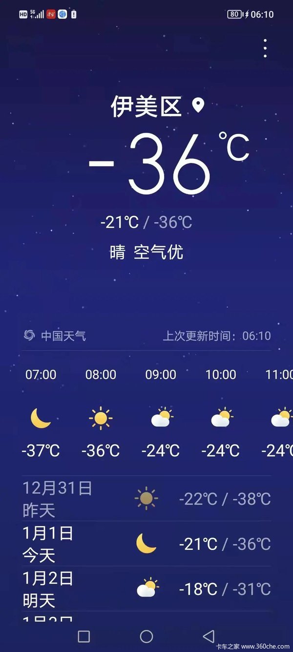 伊春市位于黑龙江省东北部,冬季白天气温经常低于-20℃,夜晚气温更是低至-30℃以下。为了测试东风福瑞卡国六车型在极端低温环境下的性能表现,此次试验人员选择了一天中气温最低的清晨时分开展试验,-36℃的低温环境对东风福瑞卡来说无疑是一场严峻的考验,但也更能体现车辆在极端严寒情况下的驾驶性能。