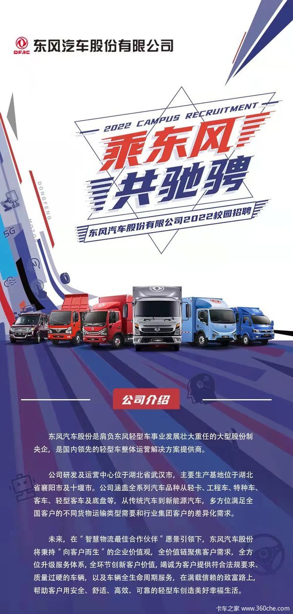 当前位置: 卡车之家 >卡车经销商 > 徐州联东汽车 > 促销新闻 > 乘东风,共驰骋!东风汽车股份有限公司2022年校园招聘