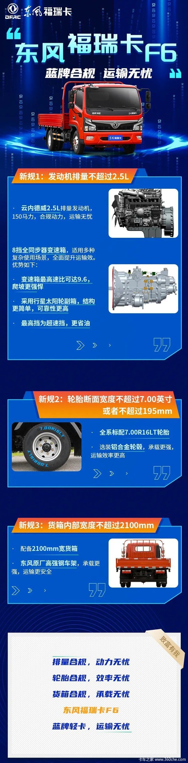 当前位置: 卡车之家 >卡车经销商 > 徐州联东汽车 > 促销新闻 > 8挡变速+轻量化车身,蓝牌轻卡首选东风福瑞卡F6!