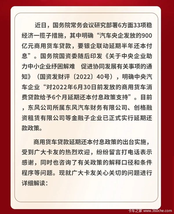 当前位置: 卡车之家 >卡车经销商 > 徐州联东汽车 > 促销新闻 > 东风公司商用货车贷款延期还本付息政策详解