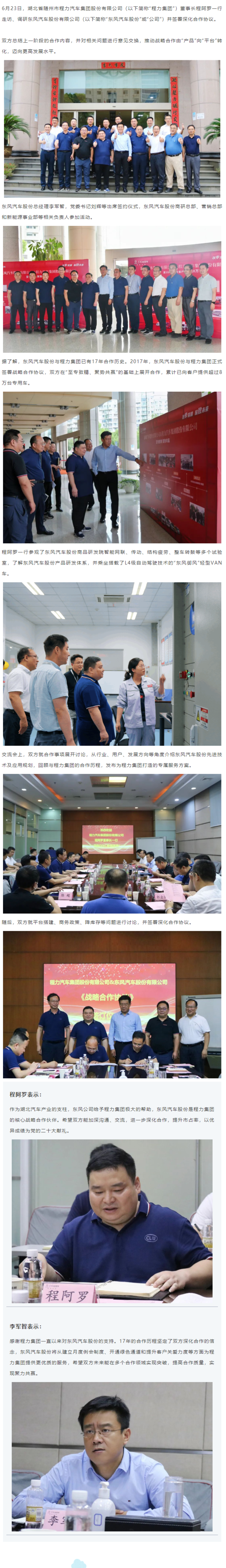 当前位置: 卡车之家 >卡车经销商 > 徐州联东汽车 > 促销新闻 > 东风汽车股份与程力集团签署深化合作协议!
