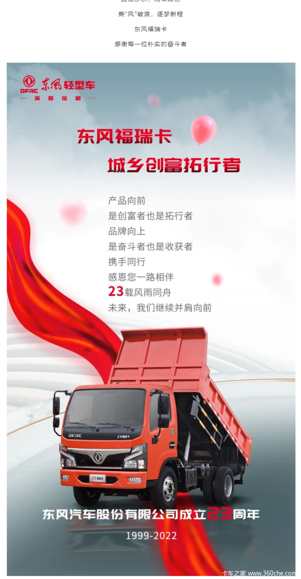 当前位置: 卡车之家 >卡车经销商 > 徐州联东汽车 > 促销新闻 > 23载,东风福瑞卡感恩有您一路相伴!