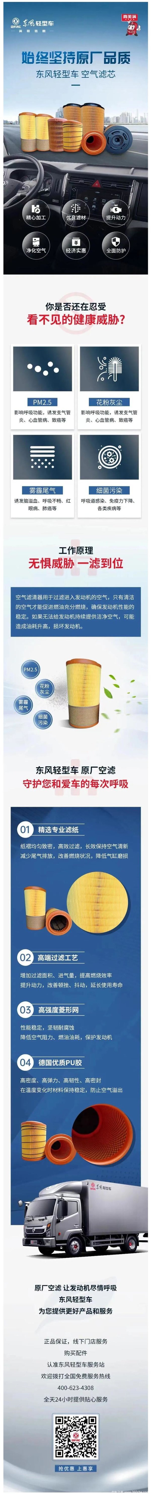 当前位置: 卡车之家 >卡车经销商 > 徐州联东汽车 > 促销新闻 > 东风轻型车原厂空滤,匠“芯”之选!