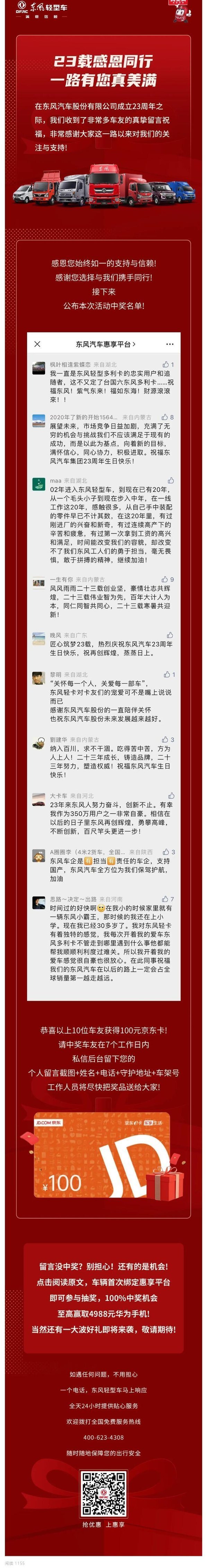 当前位置: 卡车之家 >卡车经销商 > 徐州联东汽车 > 促销新闻 > 中奖名单 | 东风汽车股份23周年感恩有您