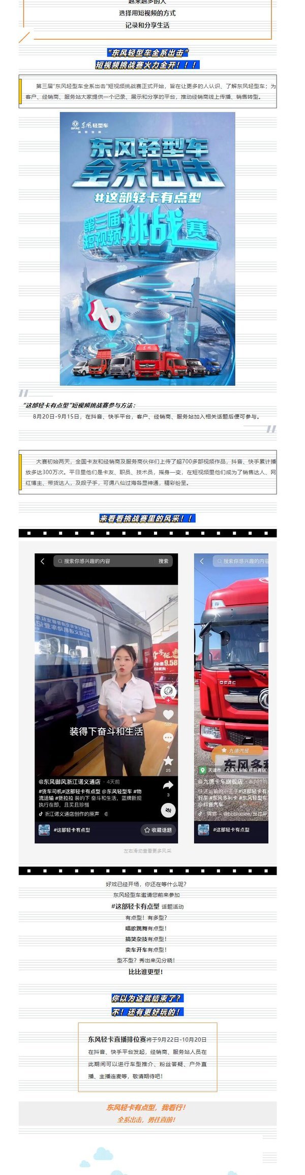 当前位置: 卡车之家 >卡车经销商 > 徐州联东汽车 > 促销新闻 > 第三届“东风轻型车全系出击”短视频挑战赛 火热进行中