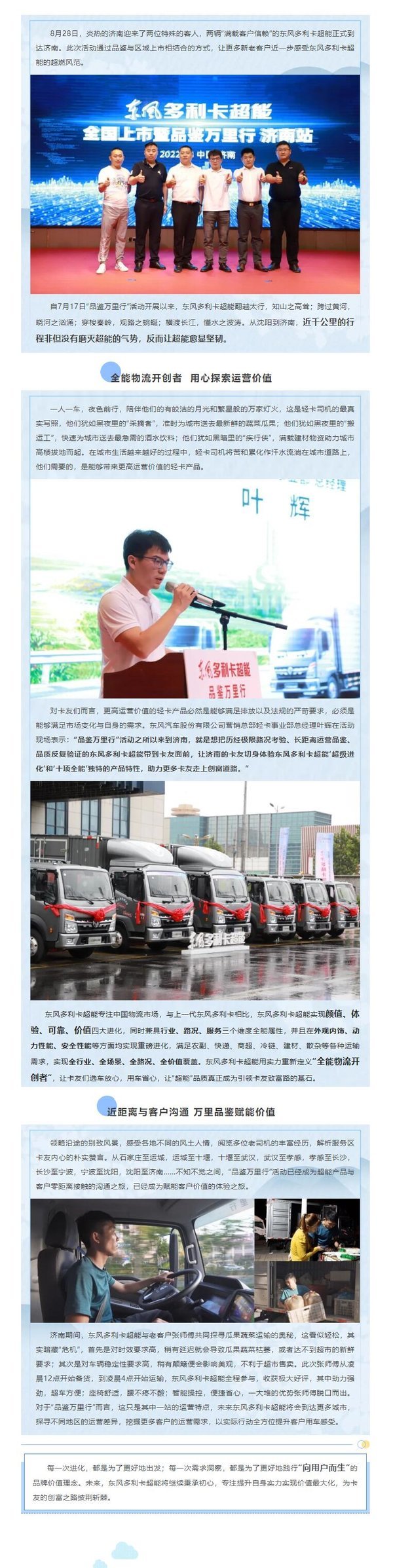 当前位置: 卡车之家 >卡车经销商 > 徐州联东汽车 > 促销新闻 > 东风多利卡超能“品鉴万里行”走进济南,现场斩获226辆订单