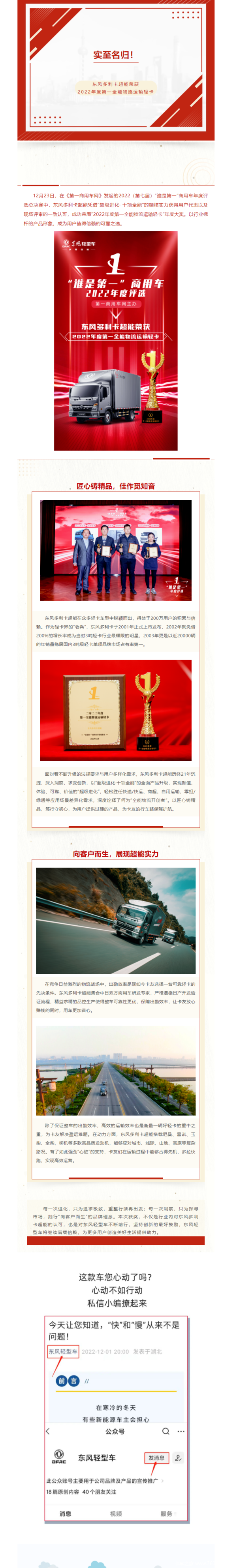 年度第一,实至名归!东风多利卡超能获奖啦!