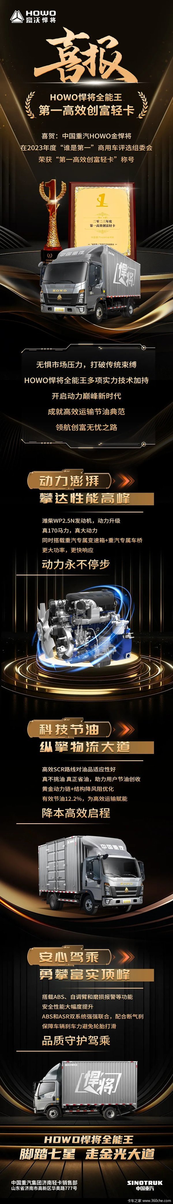 当前位置: 卡车之家 >卡车经销商 > 柳州市翔达汽车销售 > 促销新闻 > 喜报|HOWO悍将全能王——第一高效创富轻卡