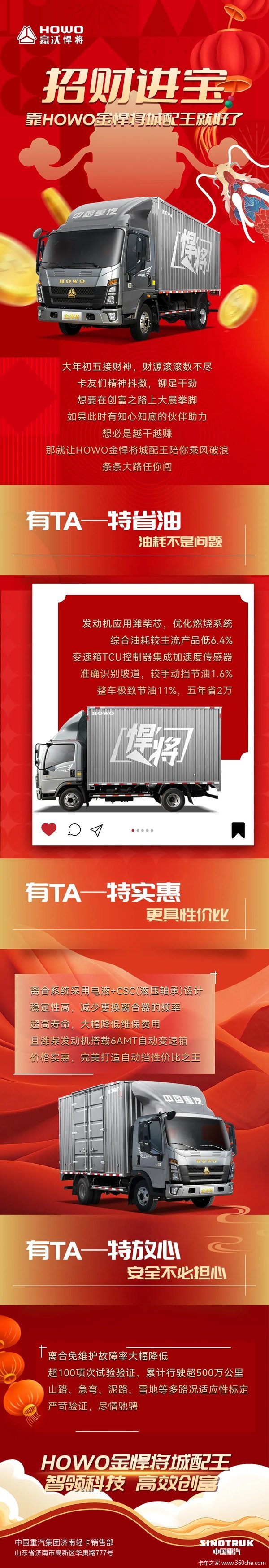 当前位置: 卡车之家 >卡车经销商 > 柳州市翔达汽车销售 > 促销新闻 > 龙行龘龘迎新春|招财进宝,靠HOWO金悍将城配王就好了
