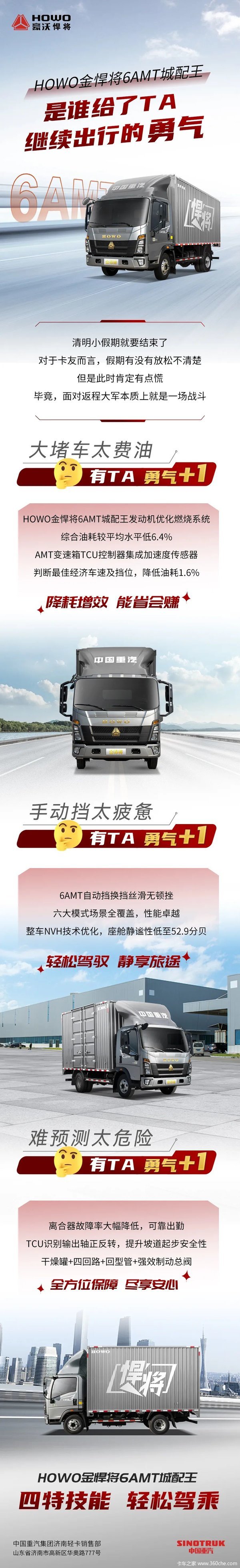 当前位置: 卡车之家 >卡车经销商 > 柳州市翔达汽车销售 > 促销新闻 > HOWO金悍将6AMT城配王|是谁给了TA继续出行的勇气