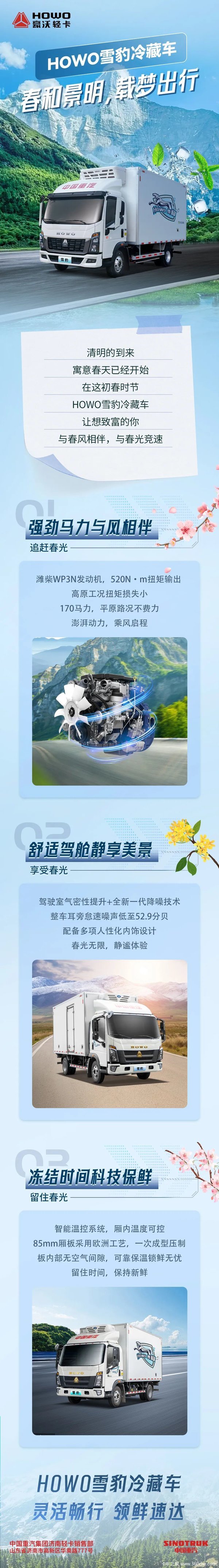 当前位置: 卡车之家 >卡车经销商 > 柳州市翔达汽车销售 > 促销新闻 > HOWO雪豹冷藏车|春和景明,载梦出行