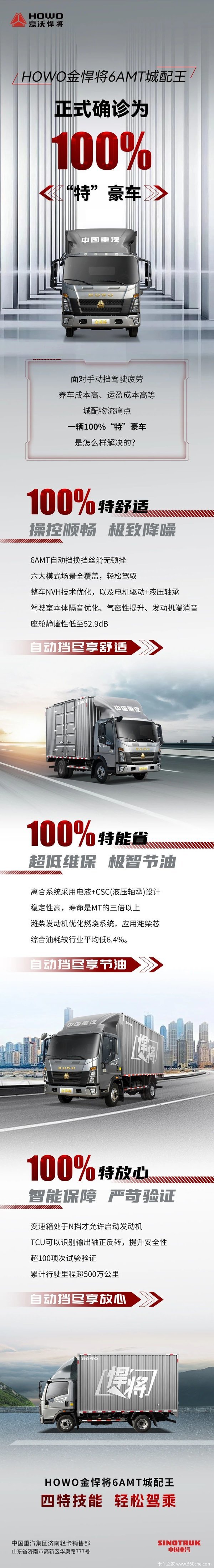 当前位置: 卡车之家 >卡车经销商 > 柳州市翔达汽车销售 > 促销新闻 > HOWO金悍将6AMT城配王|正式确诊为:100%“特”豪车