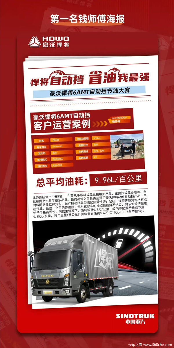 当前位置: 卡车之家 >卡车经销商 > 柳州市翔达汽车销售 > 促销新闻 > HOWO悍将6AMT节油赛|前三甲的【致富经】不容错过