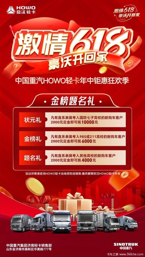 当前位置: 卡车之家 >卡车经销商 > 柳州市翔达汽车销售 > 促销新闻 > 激情618 豪沃开回家|HOWO轻卡祝莘莘学子【金榜题名】