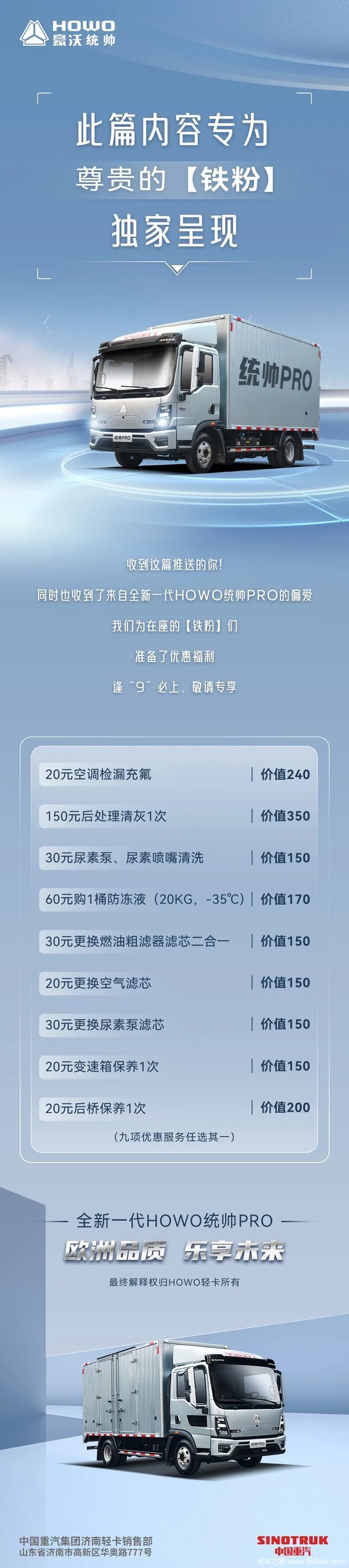 当前位置: 卡车之家 >卡车经销商 > 柳州市翔达汽车销售 > 促销新闻 > 逢“9”必上|此篇内容专为统帅PRO的【铁粉】独家呈现