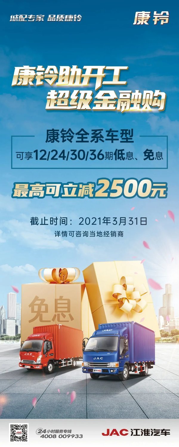 当前位置: 卡车之家 >卡车经销商 > 临沂市圣城 > 促销新闻 > 【有优惠】康铃助开工,超级金融购!!
