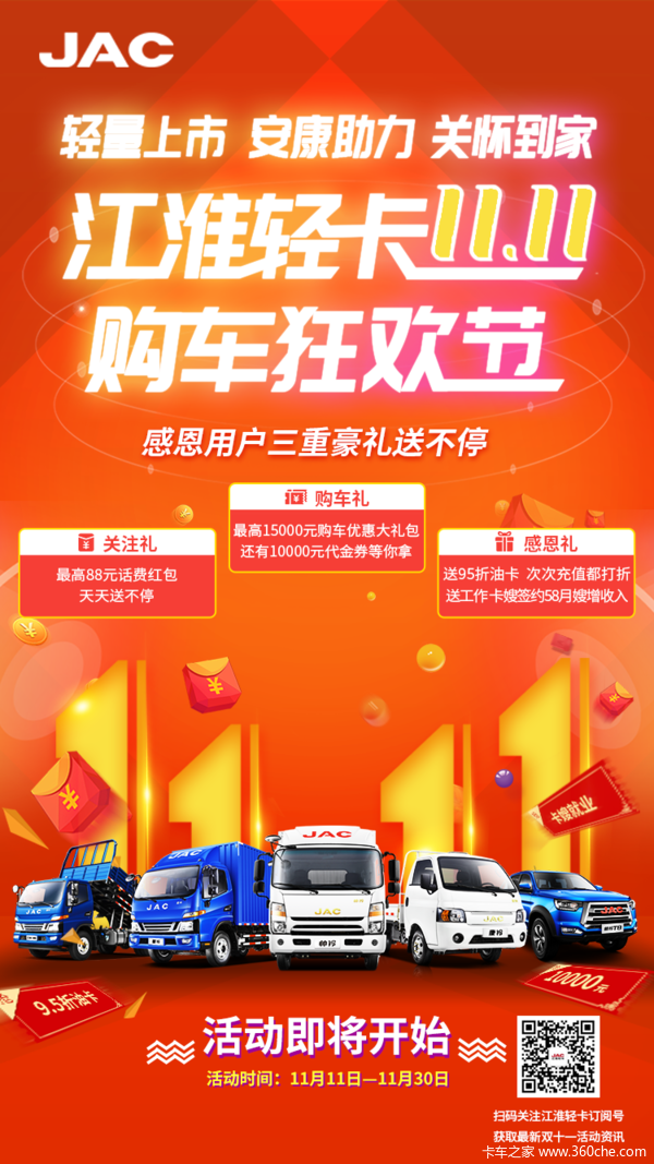 当前位置: 卡车之家 >卡车经销商 > 广州市广江汽车销售 > 促销新闻 > 江淮轻卡双11购车狂欢节!豪礼送不停!!!