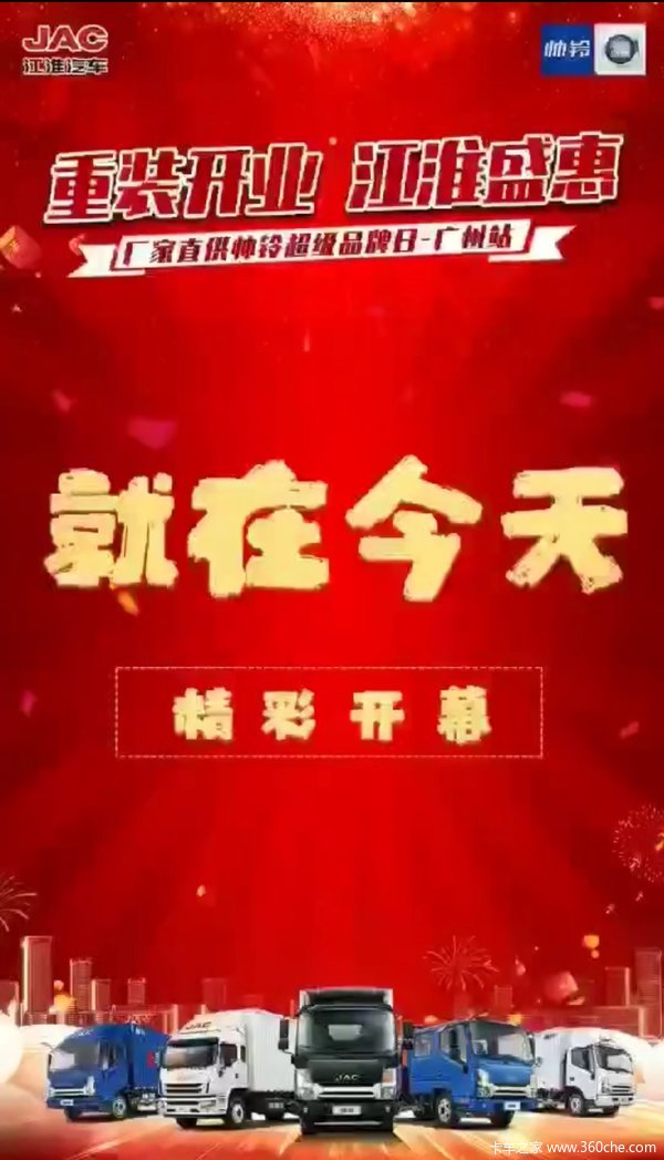当前位置: 卡车之家 >卡车经销商 > 广州市广江汽车销售 > 促销新闻 > #重装开业,广江江淮盛惠#就在今天!