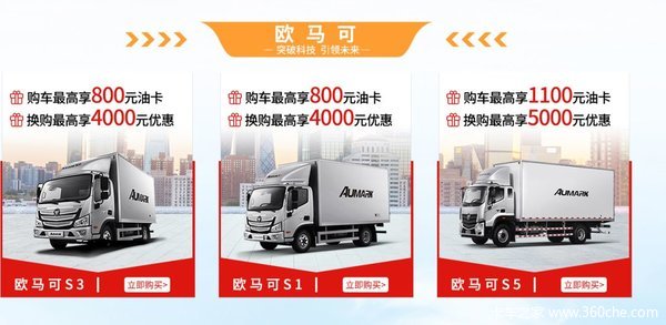 1)欧马可S1/S3购车最高享800元油卡,换购最高享4000元优惠。