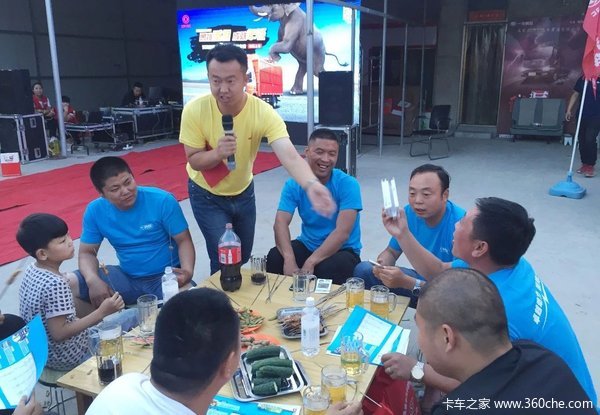 因为正值农忙时节,为了错开农忙高峰,上市会在晚上7点举行。在东风多利卡7“新”专家正式亮相和产品及服务介绍后,一场专为前来参会的卡友们准备的烧烤盛宴也开始了,席间还穿插有趣的有奖互动环节,不少卡友都抽中了奖品,更将上市晚会的氛围推向了高潮。