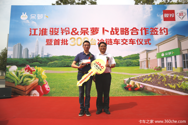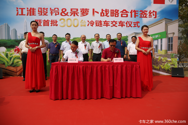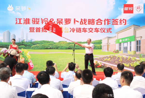 此次江淮骏铃与呆萝卜互联网生鲜电商平台签订战略合作协议&暨首批交车300台,不仅彰显了呆萝卜对江淮骏铃冷链车的信任,也是江淮骏铃在互联网生鲜电商领域的一次精彩亮相。呆萝卜公司负责人表示此次战略签约是双方精诚合作的开始,未来随着呆萝卜市场的不断扩大,还将继续与江淮轻卡进行深度合作,共同为广大中国家庭带来健康的生活体验。