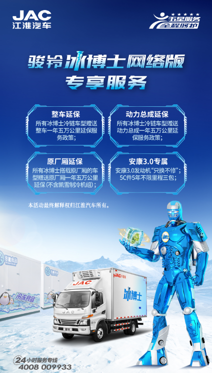 骏铃冰博士网络版充分考虑到用户需求,采用“一体化”交付,使用原厂厢体,与冷藏底盘、冷机和整车一体化设计制造,生产交付周期大幅缩减,真正做到“交付无忧”。整车多处采用轻量化设计,合规自重,“上牌无忧”。联合知名冷机厂,搭载安康动力,品质可靠。全国联保,一对一专属管家,服务更加省心。超低首付,超低利息,轻松将车开回家。“五大无忧”的使用保障,切实做到降本增效,为用户带来更高效的运力和更丰厚的报酬。