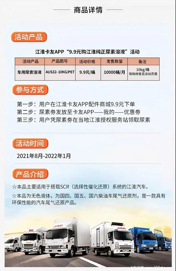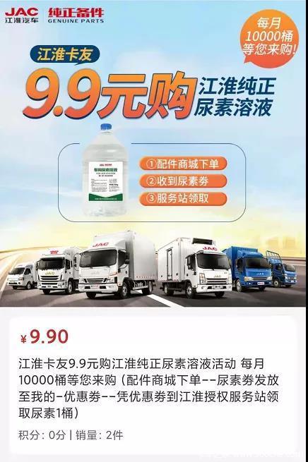 当前位置: 卡车之家 >卡车经销商 > 宁波市捷顺汽车销售服务(骏铃4S 店) > 促销新闻 > 9.9元购江淮纯正尿素溶液-每月10000桶等您来购