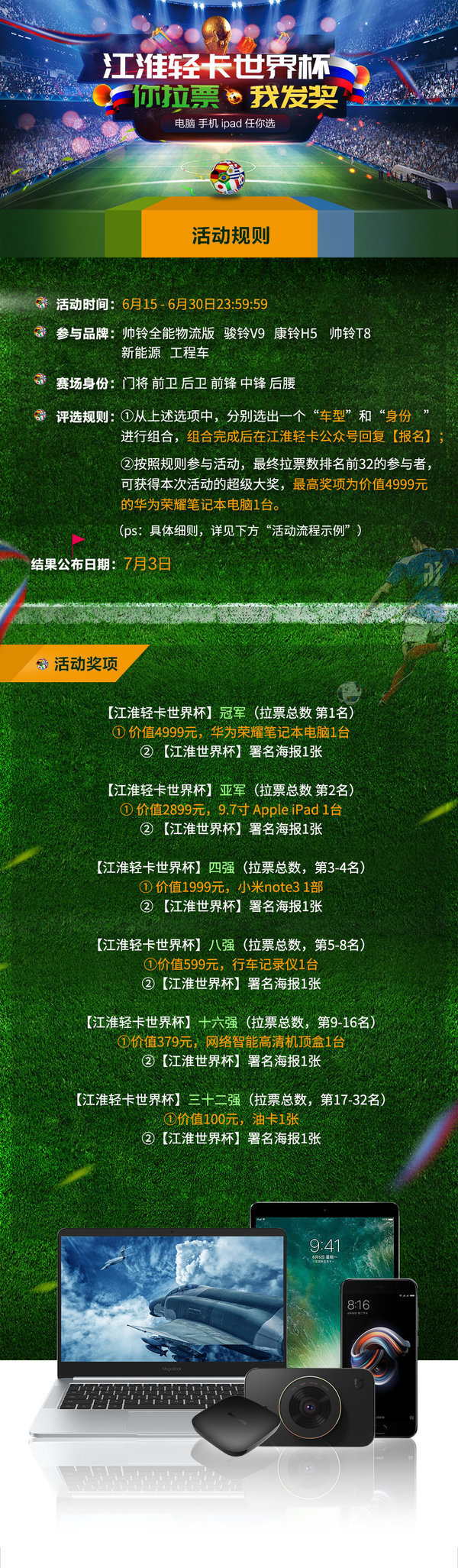 现在起,报名参与【江淮轻卡世界杯】活动,