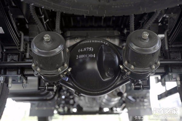 后桥部分,车辆搭载了速比为4.875的1620大轮距后桥,车辆配备了4/4+2板簧,根据需求还可选装如4/5+6等板簧规格,能够满足不同卡友对于车辆承重的需求。
