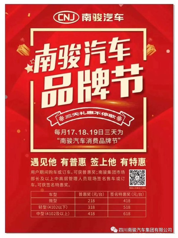 说明:每月17、18、19日,订、购车即可享受普惠奖;遇上南骏集团市场部长及以上中高层管理人员现场签名订车或购车,即可享受签名特惠奖!
