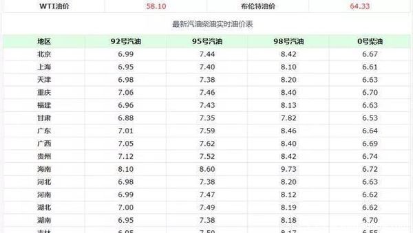 很多地区的油价