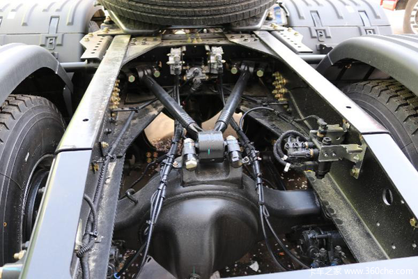 车桥采用最新的东风德纳TD440车桥。DDAC-TD440双联桥可选装轮间差速锁,并标配免维护轮端,延长了保养周期,降低后期维护成本,道路适应性更强。搭配采埃孚16挡手动变速器,更加适应高效物流运输。钢板为前三后四形式,趋向于当今的轻量化潮流。