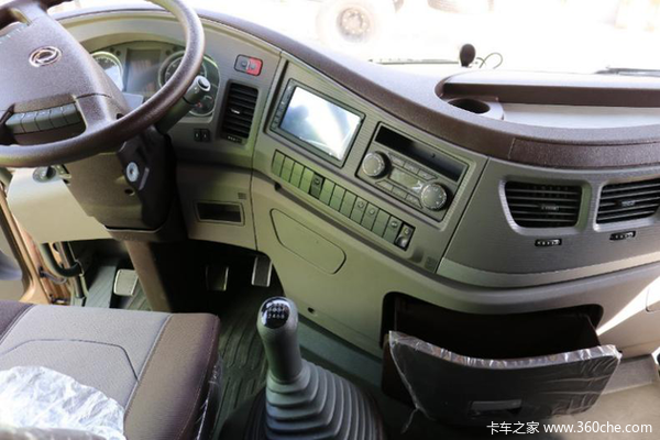 驾驶室内空间较大,采用平地板设计,驾驶室内高2.1米,在驾驶室内站立无丝毫的压抑感。8维可调气囊座椅使不同体形驾驶员都能找到最舒适的坐姿,环抱式仪表台、多功能方向盘更符合人体工程学,让驾驶室成为一个舒适的“移动家园”。