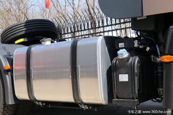 车辆采用双油箱设计,容积为600L。双油箱对于长途用户来说是很有利的一个配置,首先容积大,整体批量加油比零售加油节约更多钱;再者,可以节省因为频繁加油所浪费的时间,可以避免加到劣质油,延长发动机的寿命。另外还可以选择配置双腔油箱,能加注不同型号的柴油,在寒冷区域,只需加少许-35号柴油便可以轻松启动车辆,进一步降低燃油成本。