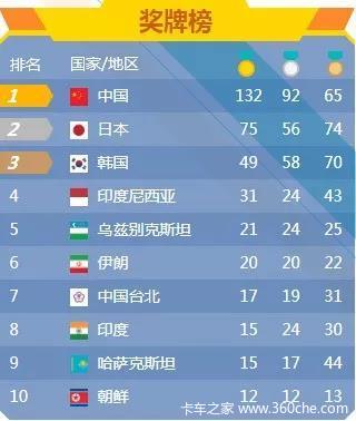 中国代表团共获得132金、92银、65铜