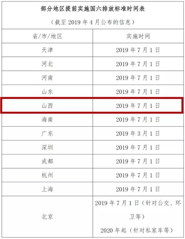 这意味着,在相应时限到来时厂家将不得再生产、销售排放不达标车型;各地车管部门也将对老排放标准车型上牌说“不”。政策发布后,各地区陆续公布了国六排放标准实施的时间表。其中河北、河南、山东、山西、海南等地将于2019年7月1日起实施新国标,早于生态环境部2020年的时限。