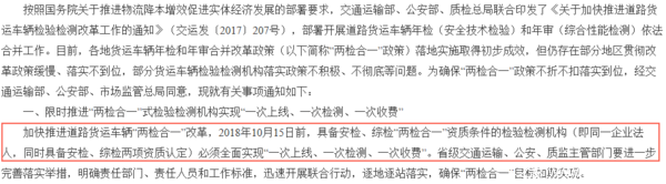 通知明确指出,加快推进道路货运车辆“两检合一”改革。
